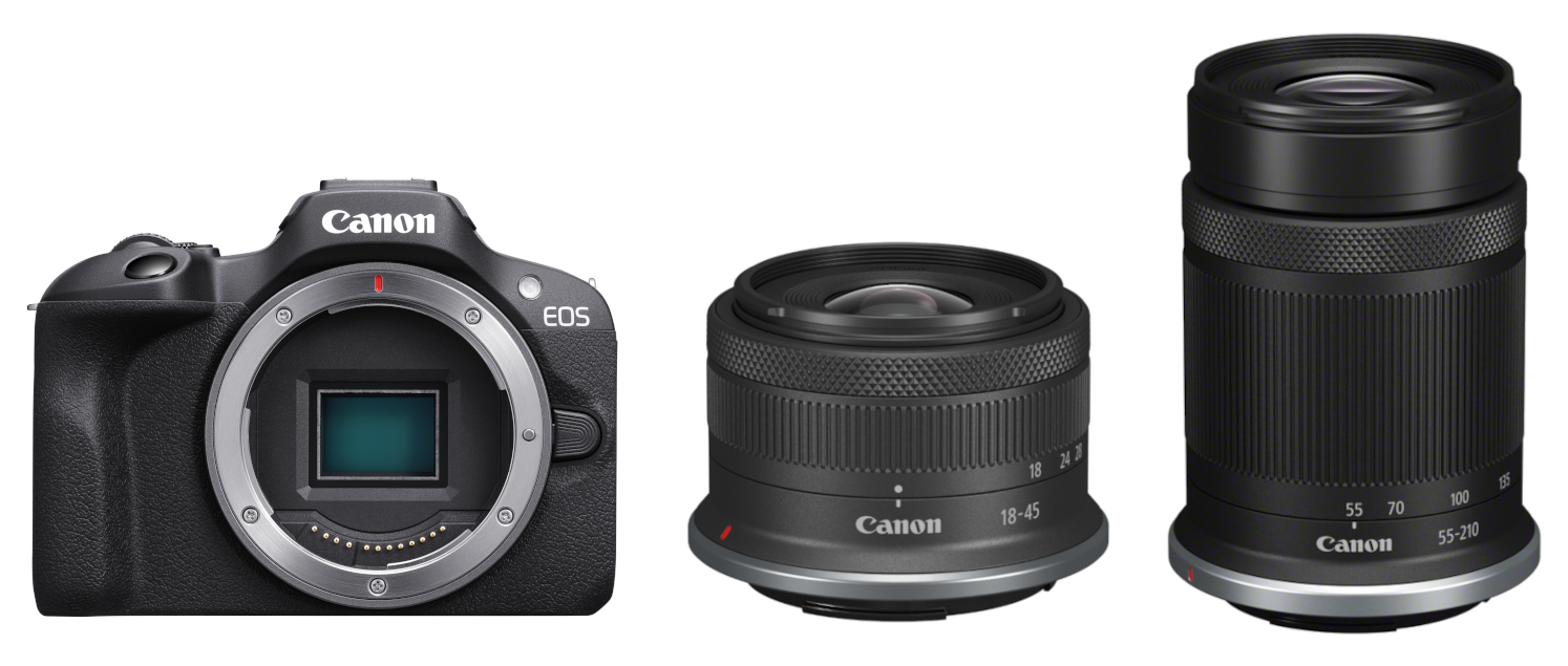 Canon EOS R100 + RF-S 18-45mm IS STM + RF-S 55-210mm 5-7.1 IS STM