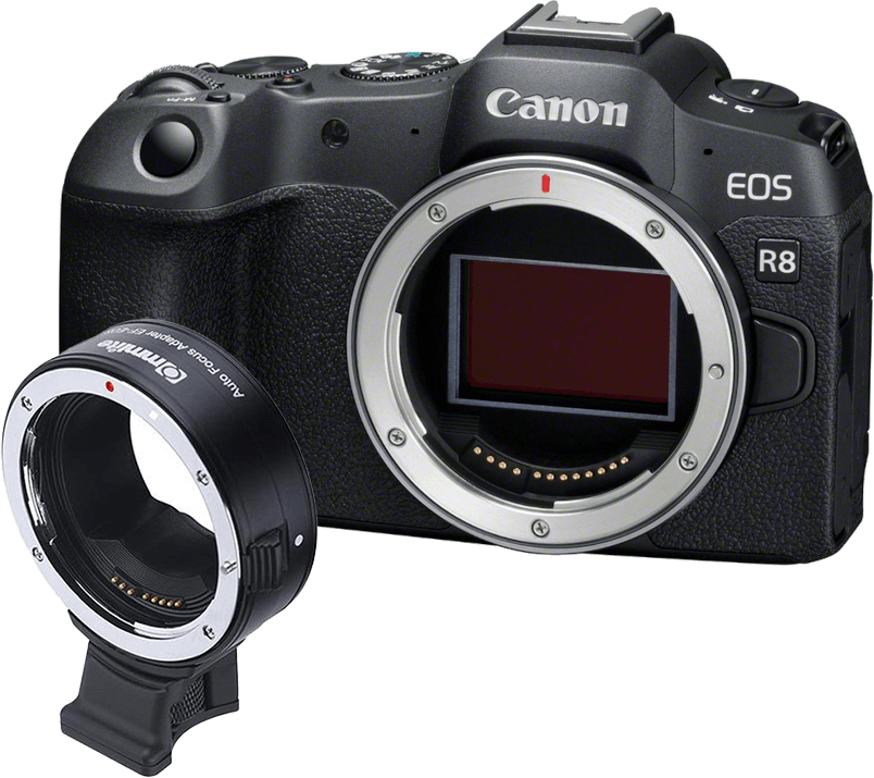 Canon EOS R8 + Commlite Adapter Canon EOS EF/EF-S mit Stativfuss