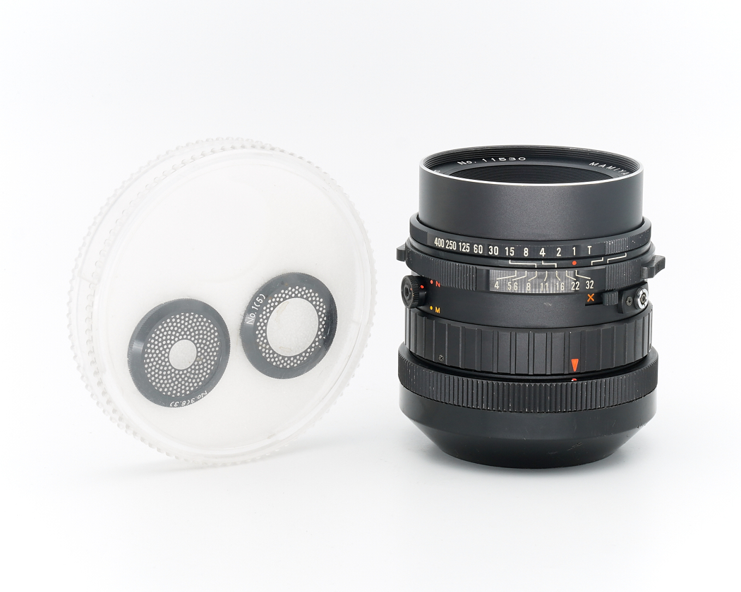 Dieses Mamiya 150mm Objektiv befindet sich im technisch einwandfreien Zustand.
